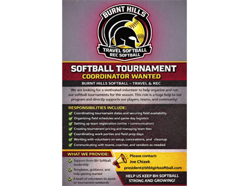 We are looking for a motivated volunteer to help organize and run our softball tournaments for the season. This role is a huge help to our program and directly supports our players, teams, and community!